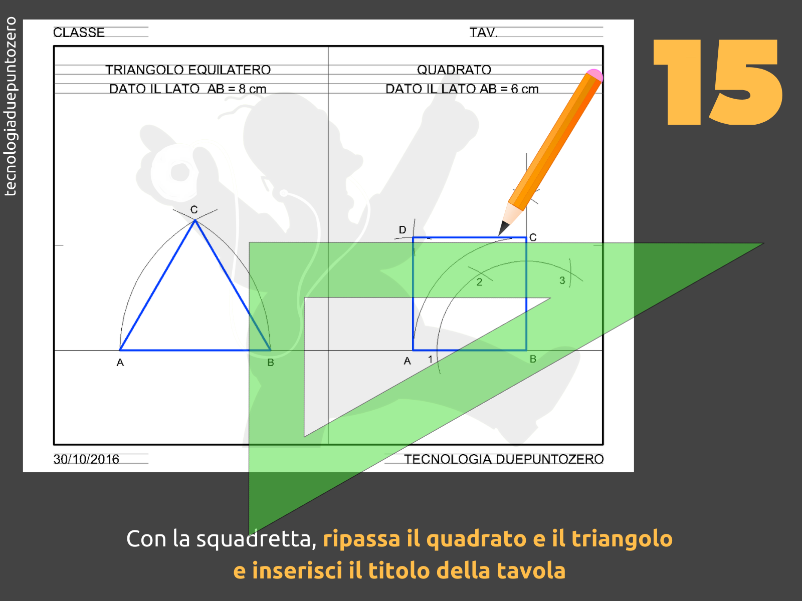 In questa tavola: Triangolo equilatero e quadrato dato il lato. Guarda il video del canale youtube Tecnologia Duepuntozero: