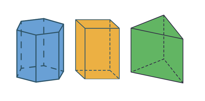 Sono esempi di prismi il cubo, il parallelepipedo, il prisma triangolare, il prisma esagonale.