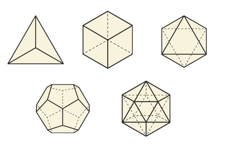 I solidi platonici sono poliedri regolari le cui facce sono poligoni regolari, e sono tutte uguali tra loro.